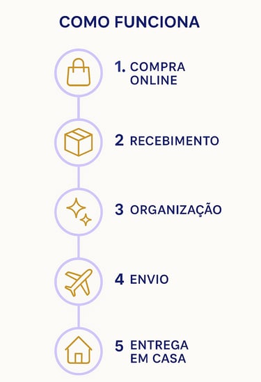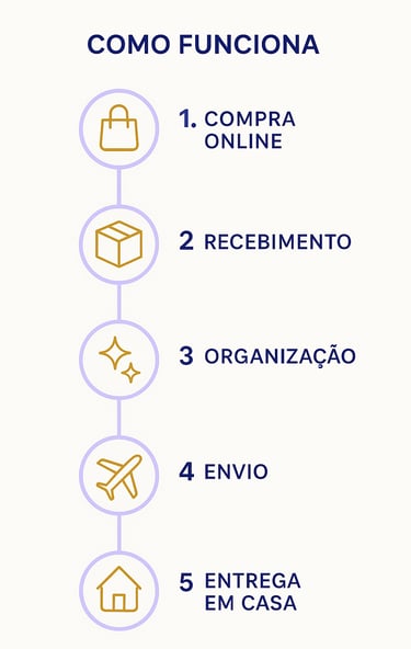 Escolha entre redirecionamento (você compra online, nós enviamos) ou Personal Shopper (nós compramos por você).